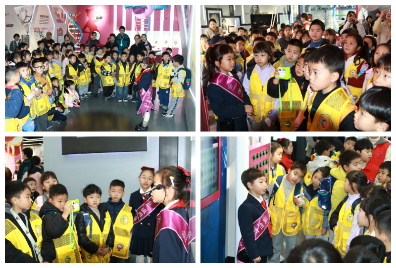 展厅里还有一道特别的风景:大学生志愿者哥哥姐姐,带着小学生组成的“志愿小分队”一起工作。哥哥姐姐们温柔地教他们如何引导游客、如何开展志愿工作,小朋友们也学得特别认真。在这个过程中,很多小朋友第一次离开爸爸妈妈身边,独立完成一项小任务。他们学习自己开口提醒、主动帮助别人,在哥哥姐姐的陪伴下,悄悄变得更勇敢、更独立。这不仅是一次志愿服务,更是一次温暖的成长陪伴。