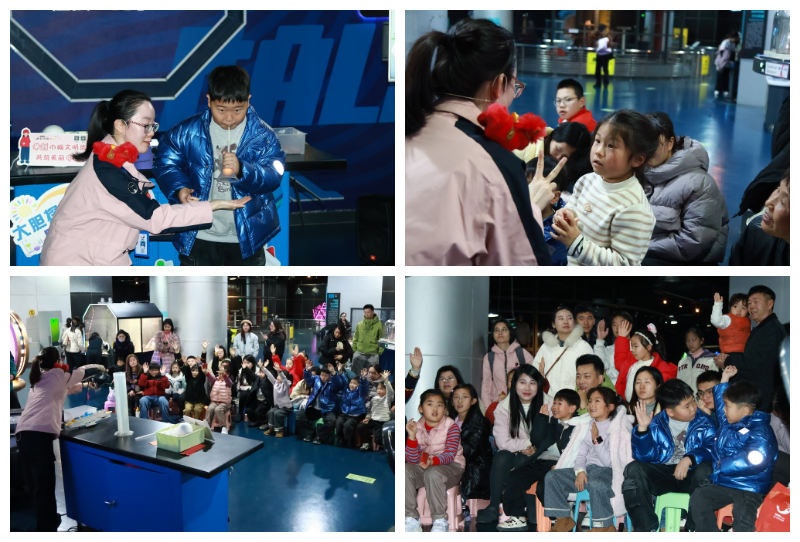随着机器人表演的结束,科技馆集章闯关活动正式开始。孩子们手持闯关卡,穿梭于各个展区之间。从“策马飞旋”中体验离心力,在“白驹过隙”中学习清洁知识;拼装“龙马精神”的人体结构,拉动“力拔山河”的马德堡半球;发射“一飞冲天”的模拟火箭,破解新春密“码”锁的齿轮玄机。六道关卡,六枚印章,串联起一条从地面到太空、从人体到机械的科学之旅。