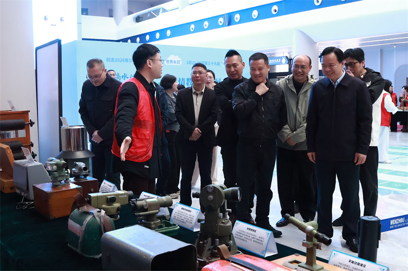 活动现场精心打造的“水情教育科普能量站”主题展区人气爆棚,24个立屏展架以童趣卡通漫画、趣味手绘图解的形式生动铺展,仿佛打开了水世界的奇妙大门。参观者循着展架一路探索,从解答“水从哪里来”“水有哪些神奇作用”的十万个为什么,到追溯一滴水从瓯江源头出发,流经温州城乡、融入城市供水网的全程旅行,再到沉浸式聆听温州水网建设、治水护水的生动故事,一步步解锁水的奥秘与温州的水情密码。展区内,节水器械、水文监测无人机、专业水文测量仪等实物整齐陈列,不少参观者驻足细看,直观感受科技为水资源保护与利用注入的硬核力量。