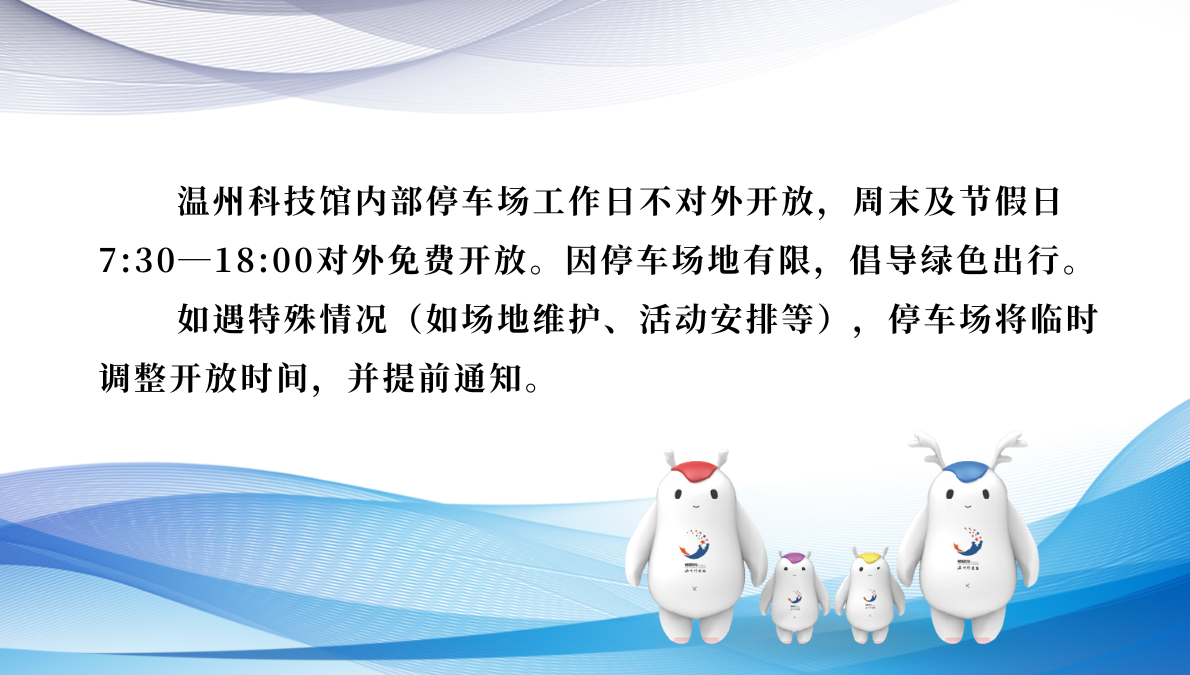 一、开馆时间以温州科技馆官网、微信公众号或现场公告为准,请提前查询。