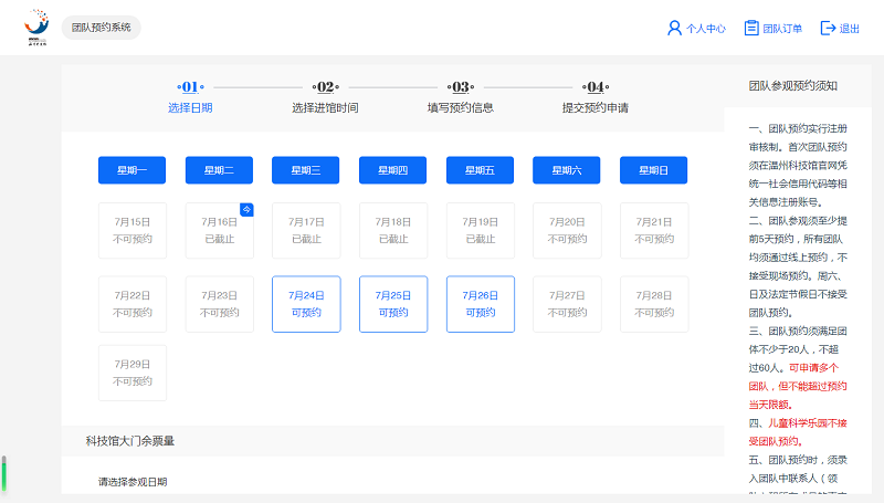为更好地满足公众团体参观需求,温州科技馆团队参观预约系统计划将于2024年7月19日早上9:00正式上线试运行。现将相关事项通知如下: