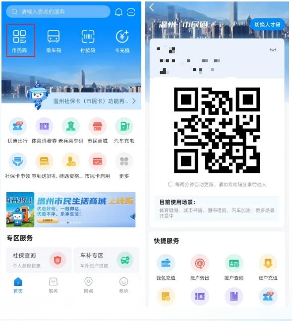 在“温州科技馆”公众号预约成功后,手机登录“温州市民卡”APP,打开首页的“市民码”页面,将其对准闸机扫码区域,扫码成功后即可入馆参观。