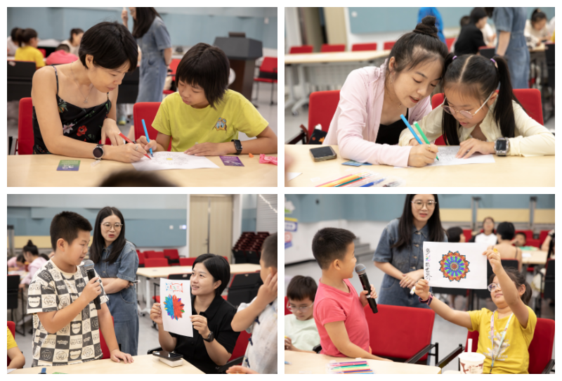 一位孩子分享:“这幅画叫心花怒放,我们想到哪里画哪里,非常有默契地完成了这幅画,整个过程既刺激又充满冒险。”在轻松的创作氛围中,家庭成员通过色彩、线条和语言表达,学会倾听和理解彼此的情绪。每一次笔触和分享,都是亲子间情感联结的桥梁,让专注与理解自然流淌,温暖了每个人的心。
