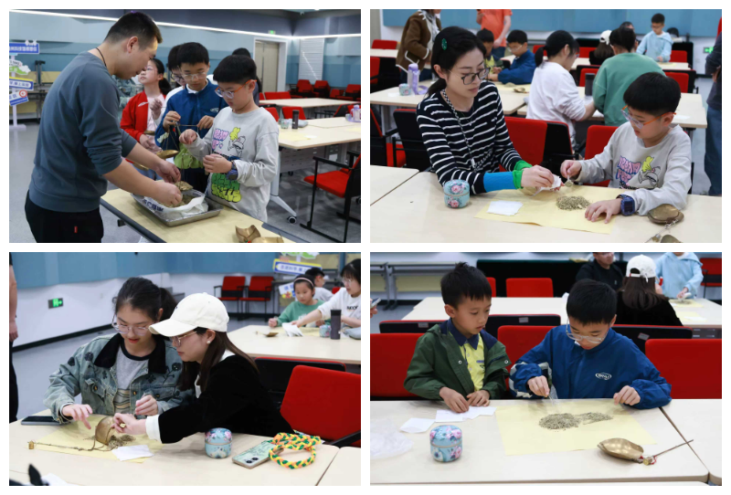 “亲手制茶”体验环节,在郑老师的指导下,家长和孩子们一起动手,称取黄芪、桑叶、红枣等药材,称量和包装,共同制作了具有益气固表、增强免疫力功效的黄芪桑叶茶。大家兴趣浓厚,在实践过程中进一步巩固了所学知识,也将健康防护的理念带回家中。