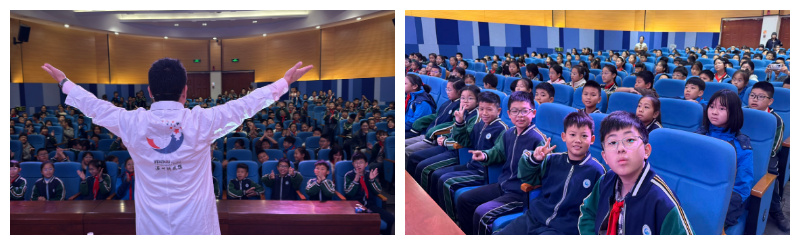 液氮吹出“冰号角”、2米塑料袋火箭比肺活量、乒乓球机关炮“火力全开”……田若平老师带领同学们走进了科学的奇妙世界,用生动有趣的语言和精准的操作技巧,将复杂的科学原理变得通俗易懂,让学生们在轻松愉快的氛围中掌握了科学知识。
