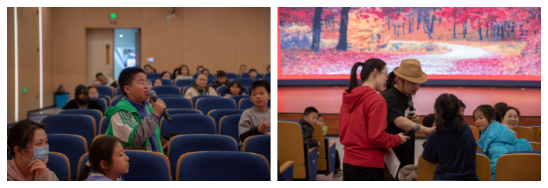 在互动环节中,色彩的能量通过直观的体验,深深触动了全场。春大叔依次展示了潘通色卡上的正绿、正黄、正蓝与正红,并引导孩子们说出对每种颜色的第一感受与能量联想。他还通过对比自然林木与人工绿化带的影像,剖析了两种绿色带来的不同感受,并借此建议家长:当孩子课业繁重时,应多带他们走进充满生命力的自然绿意中,这有助于释放压力,重获内心安宁。整个互动过程,生动展现了色彩直抵人心的感染力。