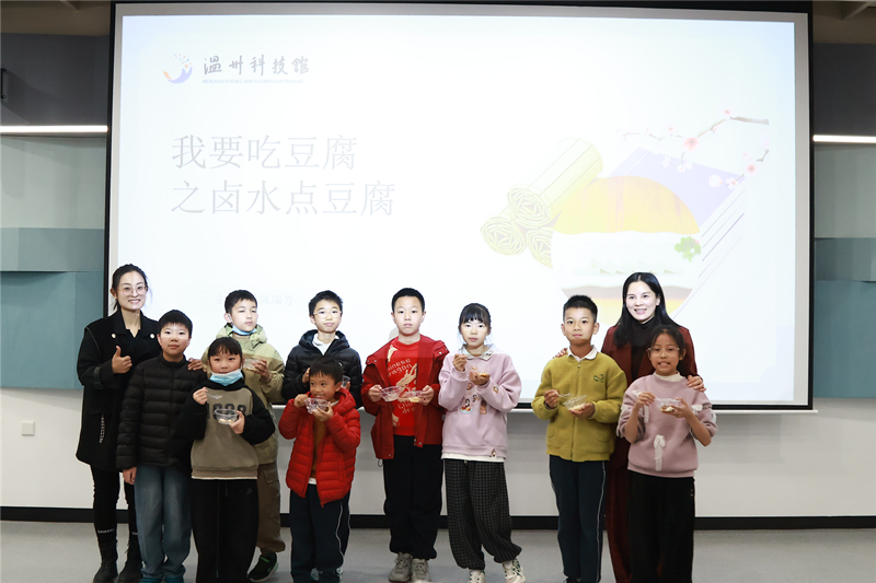 12月6日,温州科技馆“科”享生活荟第三十四期活动《我要吃豆腐之卤水点豆腐》圆满举行。在营养师的带领下,大家不仅现场体验了传统豆腐的制作全流程,更通过“卤水点制”这一核心环节,亲身感受了食物转变中的科学魅力与匠心传承。