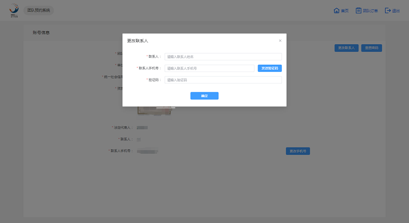 2.注册申请提交成功后,需要等待后台审核,审核结果发送短信予以告知。审核通过后,登录可查看团队信息。支持更改联系人、重置密码、更改联系人手机号。
