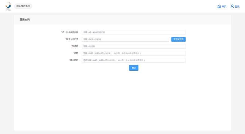 3.登录时若忘记密码,可以通过统一社会信用代码+联系人手机号+验证码,重置账号密码。