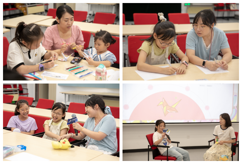 分享环节,一位小朋友说:“我总折歪,但后来告诉自己‘慢慢来’,就成功啦!”一位妈妈表示:“我性子急,但孩子爸爸很稳,其实我们家可以互相补足。”