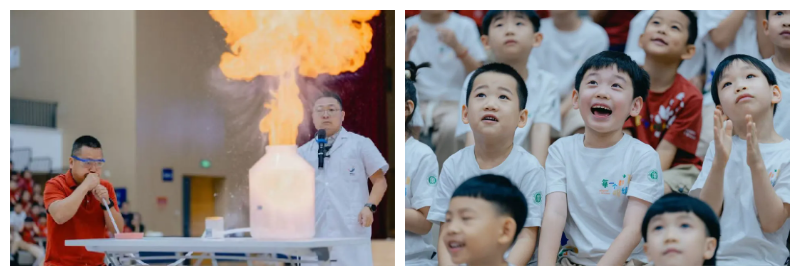 最令人印象深刻的环节莫过于“粉尘爆燃”与“粉尘爆炸”实验。当模拟粉尘在特定条件下瞬间爆燃、继而引发爆炸时,台下的同学们个个屏息凝神,目不转睛地注视着实验台。田老师适时为大家解析其中的科学原理,并强调“科学虽有趣,安全不可忘”,引导同学们既理解知识,又时刻牢记操作规范。整个过程中,田老师语言幽默生动,将复杂的原理讲解得清晰透彻,同学们听得津津有味,在轻松愉快的氛围中,扎实地掌握了新知识。
