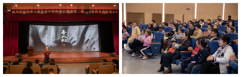 11月22日,温州科技馆开展春大叔生活中的科学启蒙第三期活动《看得见的好奇心》,春大叔以独特的艺术视角,带领大家开启了一场关于好奇心与美的发现之旅,让我们一起回顾一下吧!