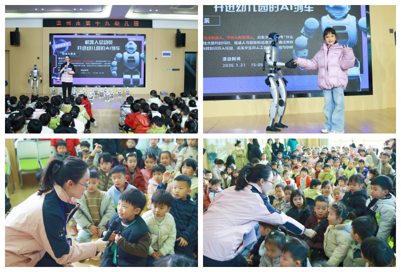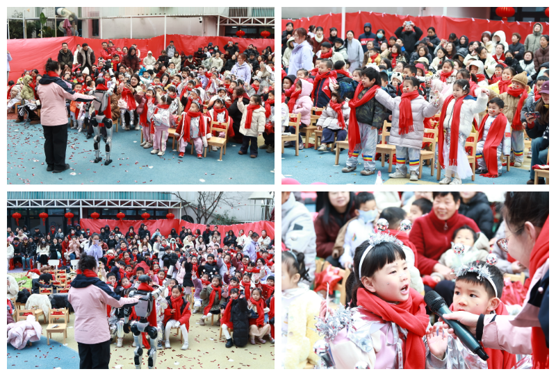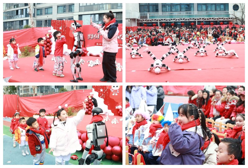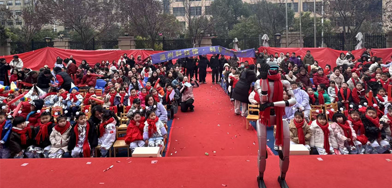 “哇!机器人会跳舞!”随着音乐响起,机器人“特工队”闪亮登场。《青春修炼手册》的欢快节奏中,机器人整齐划一地舞动身躯。孩子们跟着音乐节奏摇摆,有的模仿机器人的动作,还有的兴奋地拉着身旁小伙伴的衣袖:“快看!那个机器人转头了!”阵阵欢呼声和掌声在校园里回荡。在随后的机器人互动和科技问答环节,孩子们也展现出极大的热情,争先恐后地与机器人进行近距离互动。